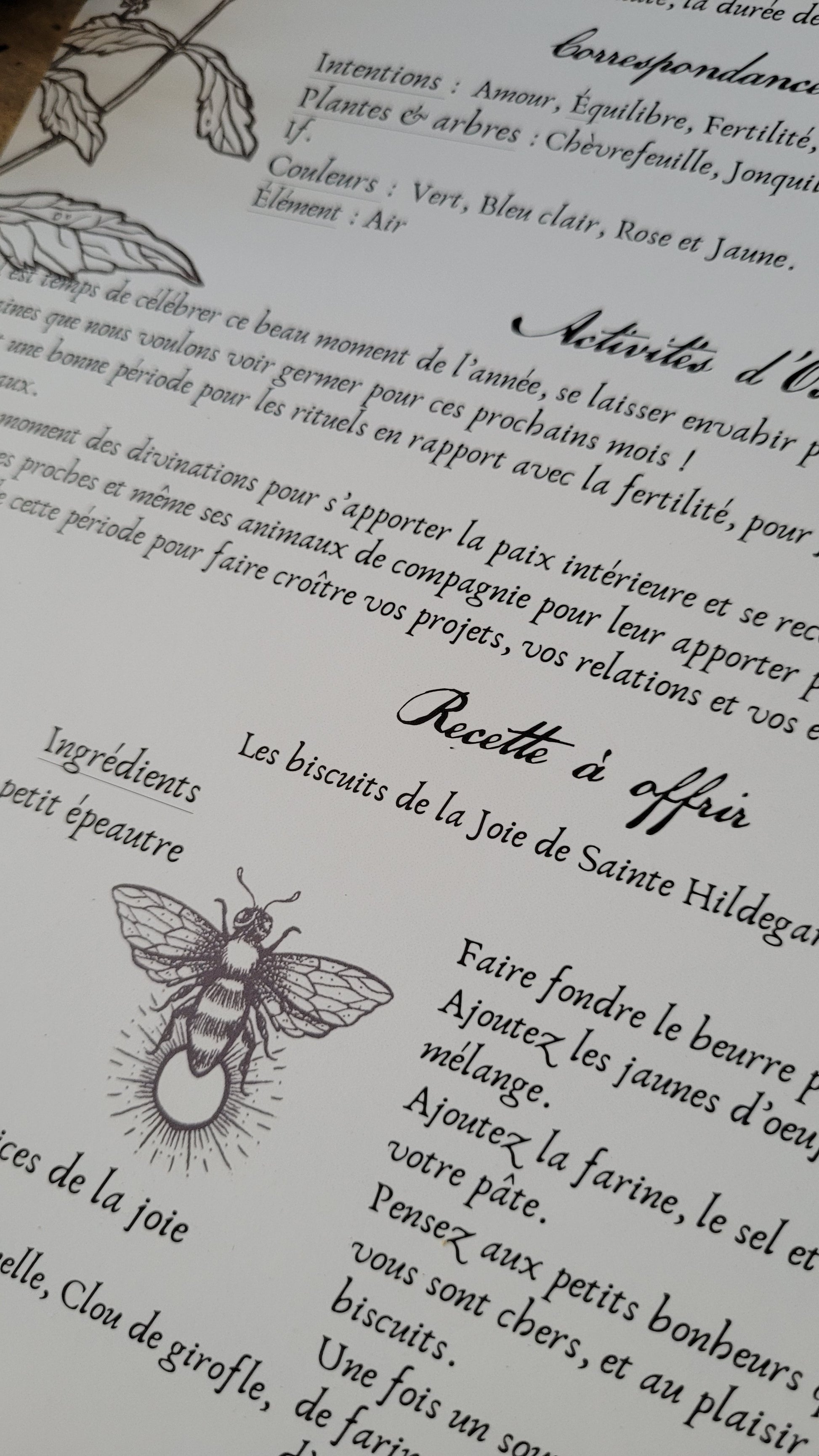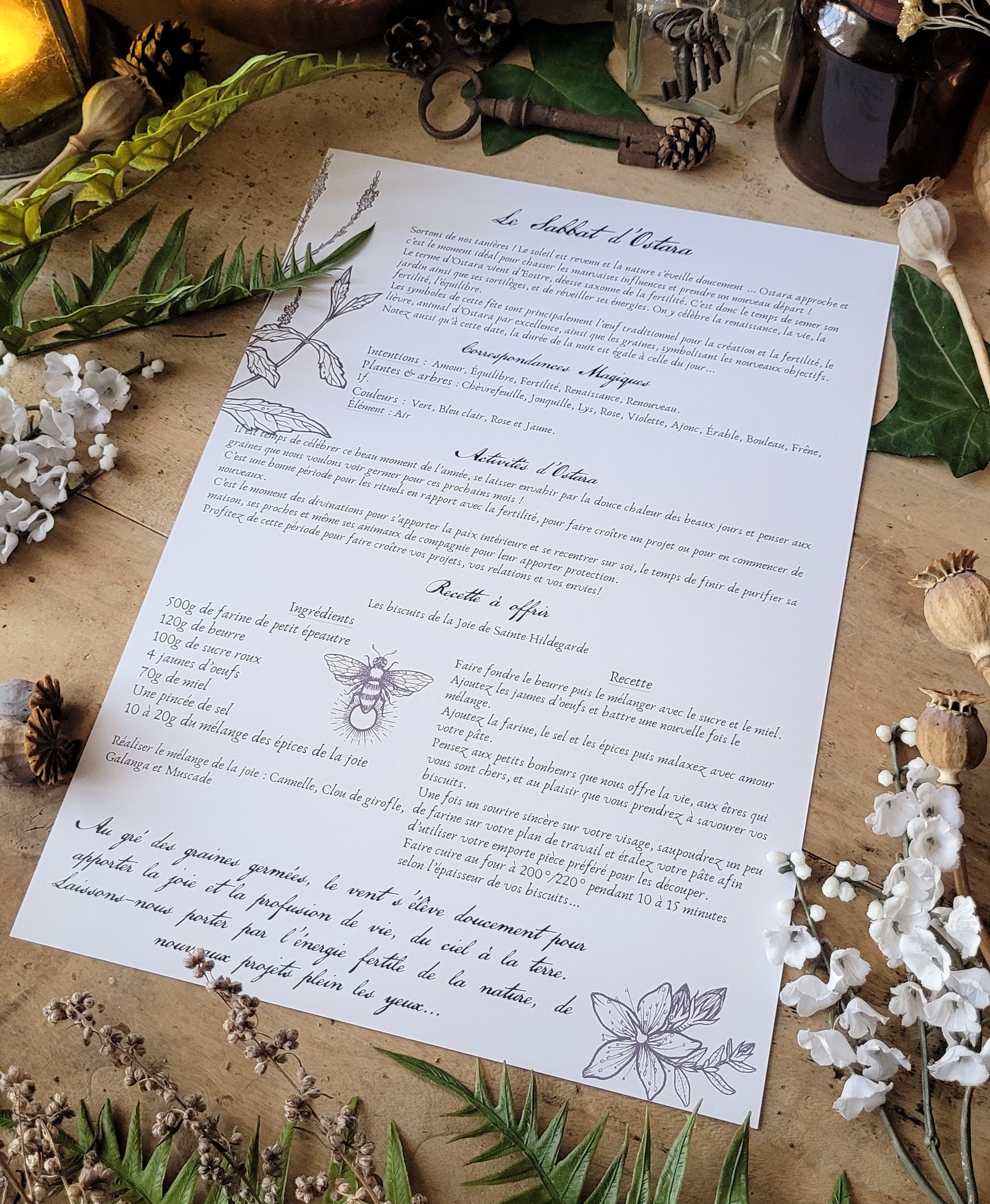 Tu trouveras au verso de cette affiche les correspondances magiques et des idées d'activées pour Ostara, ainsi qu'une recette des biscuits de la joie de Sainte Hildegarde, que je trouvais parfaits pour ce sabbat.