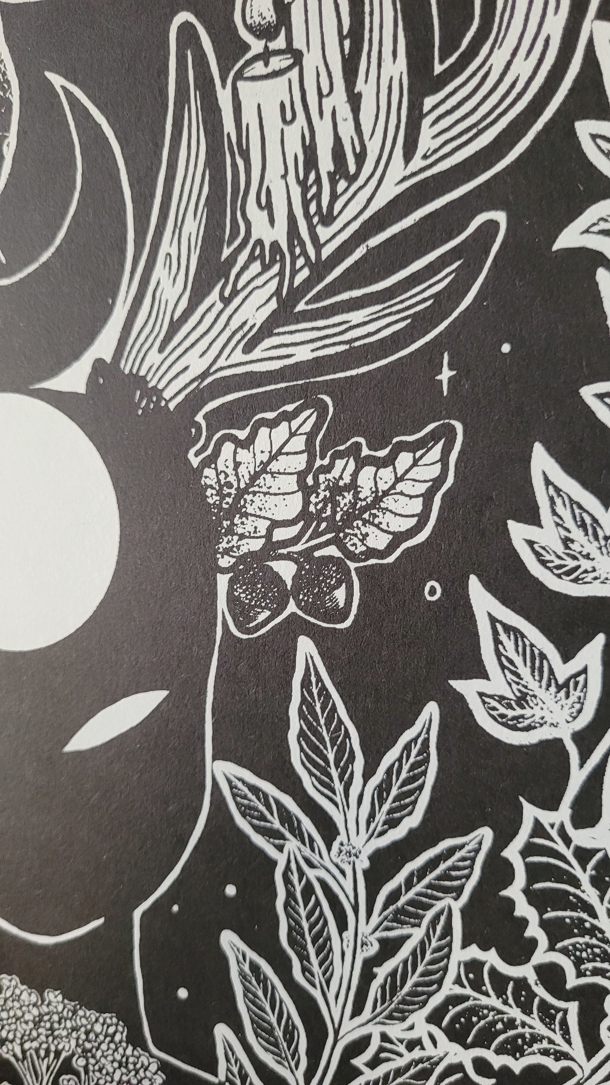 De plus, ces illustrations ont été réalisées par mes soins, ainsi que l'impression en sérigraphie artisanale sur du papier recyclé de 270 g (papier très épais) 🌙