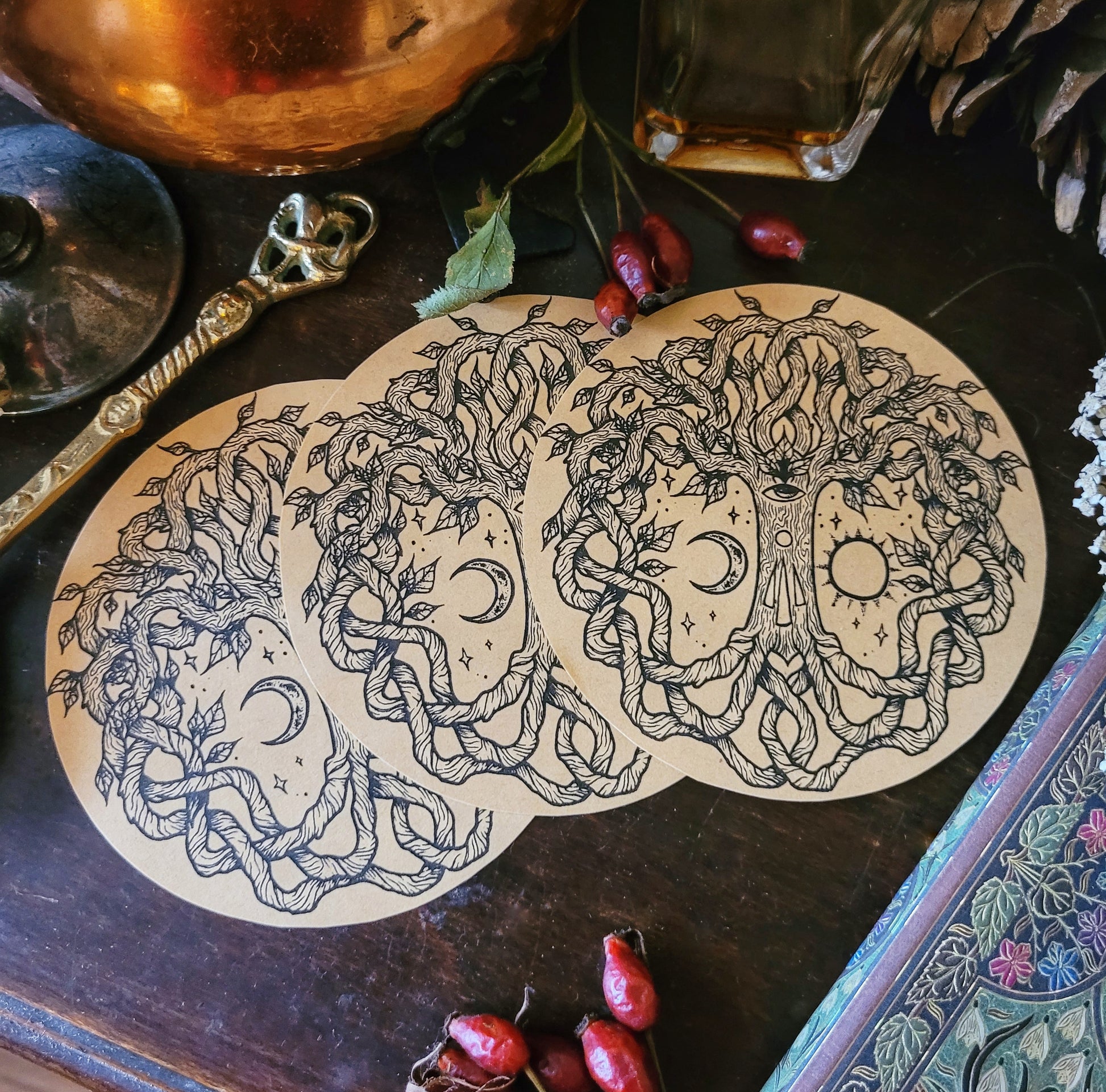 ✦ Ces autocollants mesurent 10,5 cm de diamètre sur papier kraft, pour une utilisation en intérieur de préférence (couche de vernis uniquement)