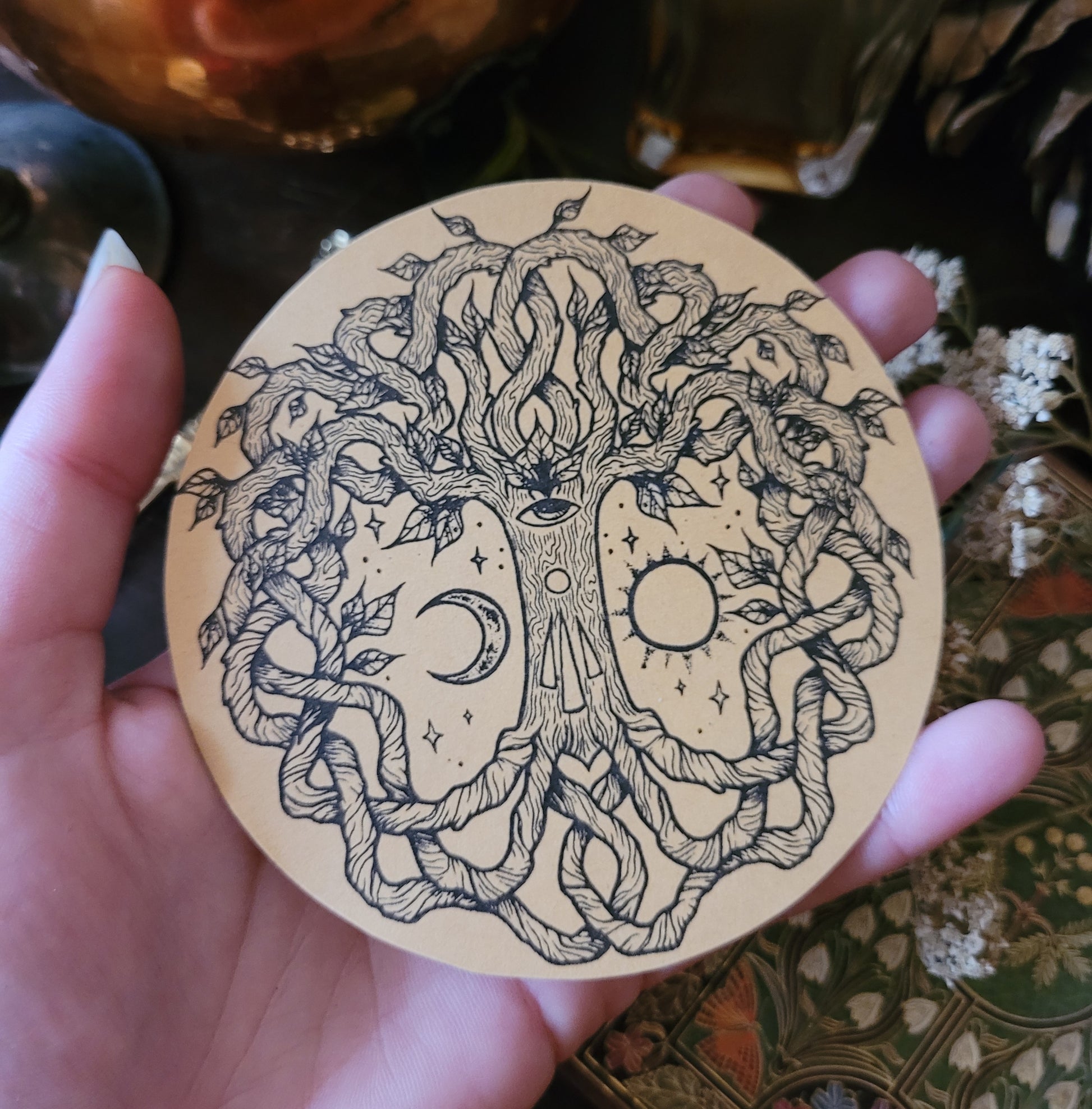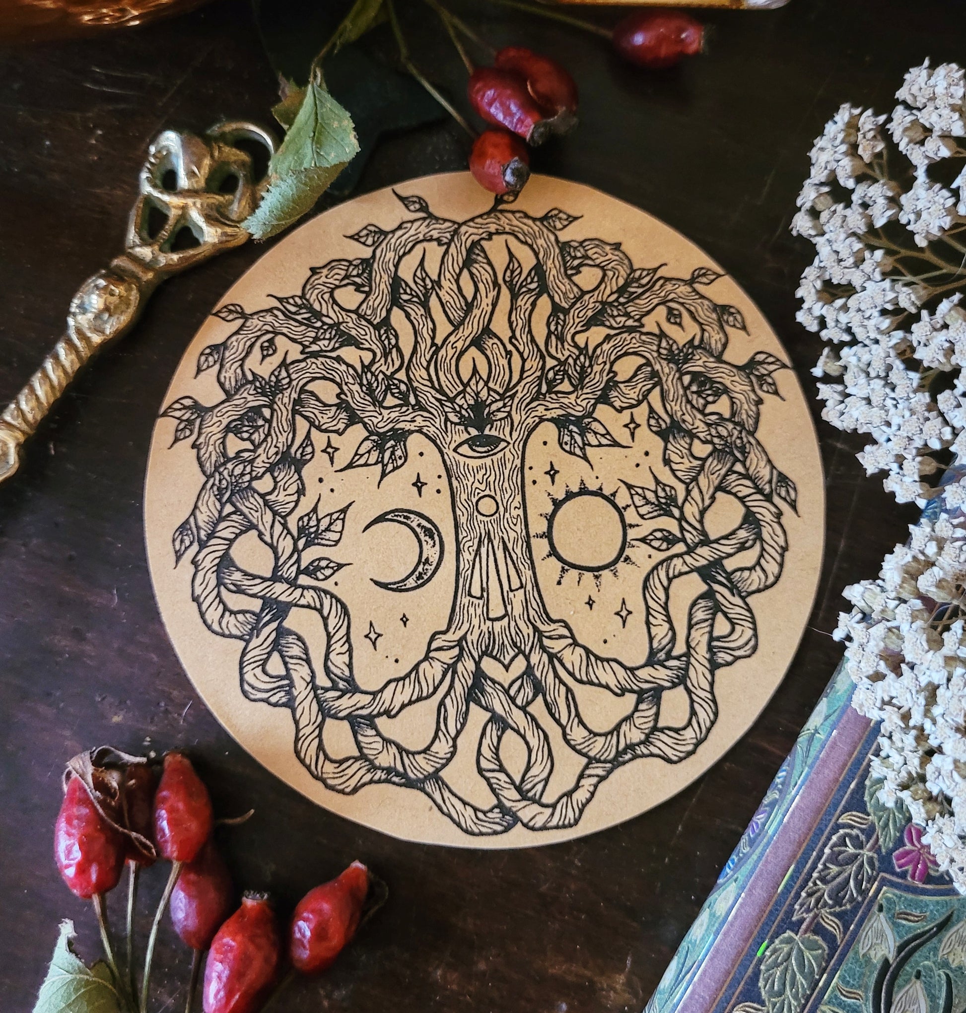 Il ne s'agit pas du premier arbre de vie que je dessine, mais il s'agit bien de celui dont je suis le plus fière. Tu connais probablement l'importance de ce symbole chez les Celtes, mais également dans la Bible ou dans la Kabbale. C'est bien sûr sa signification aux yeux des peuples Celtes qui m'a inspirée ici, dont l'arbre de vie porte le nom de Crann Bethadh. Cet arbre forme un seul tout, car ses branches sont reliées à ses racines de façon infini, de la même façon que le ciel est lié à la terre et la vie est liée à la mort, dans le cycle naturel des choses.