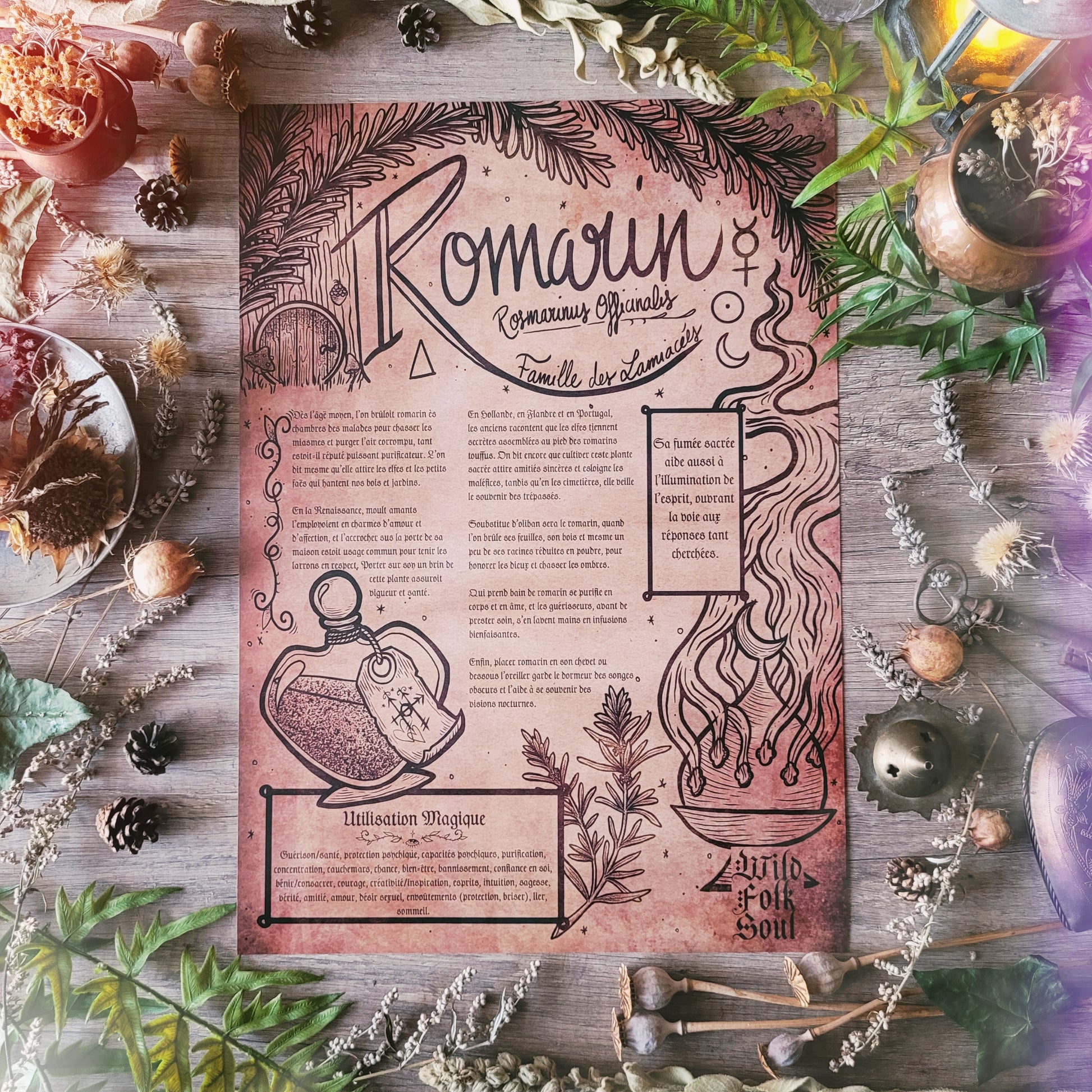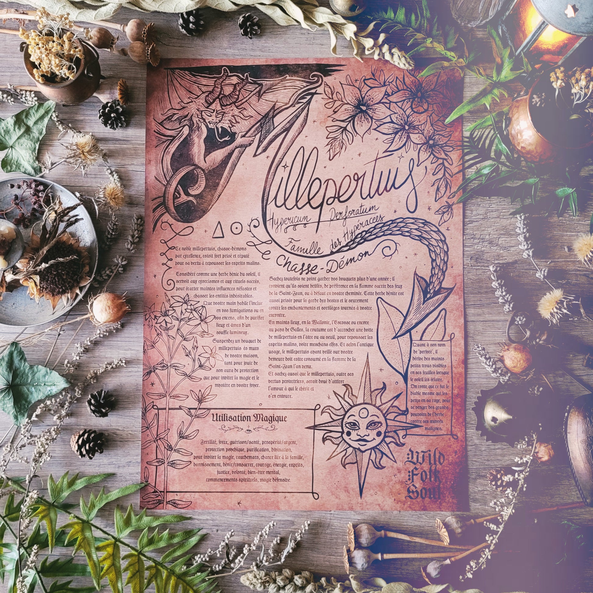 ✦ Trois affiche grimoire -Illustration Millepertuis, Armoise et Romarin