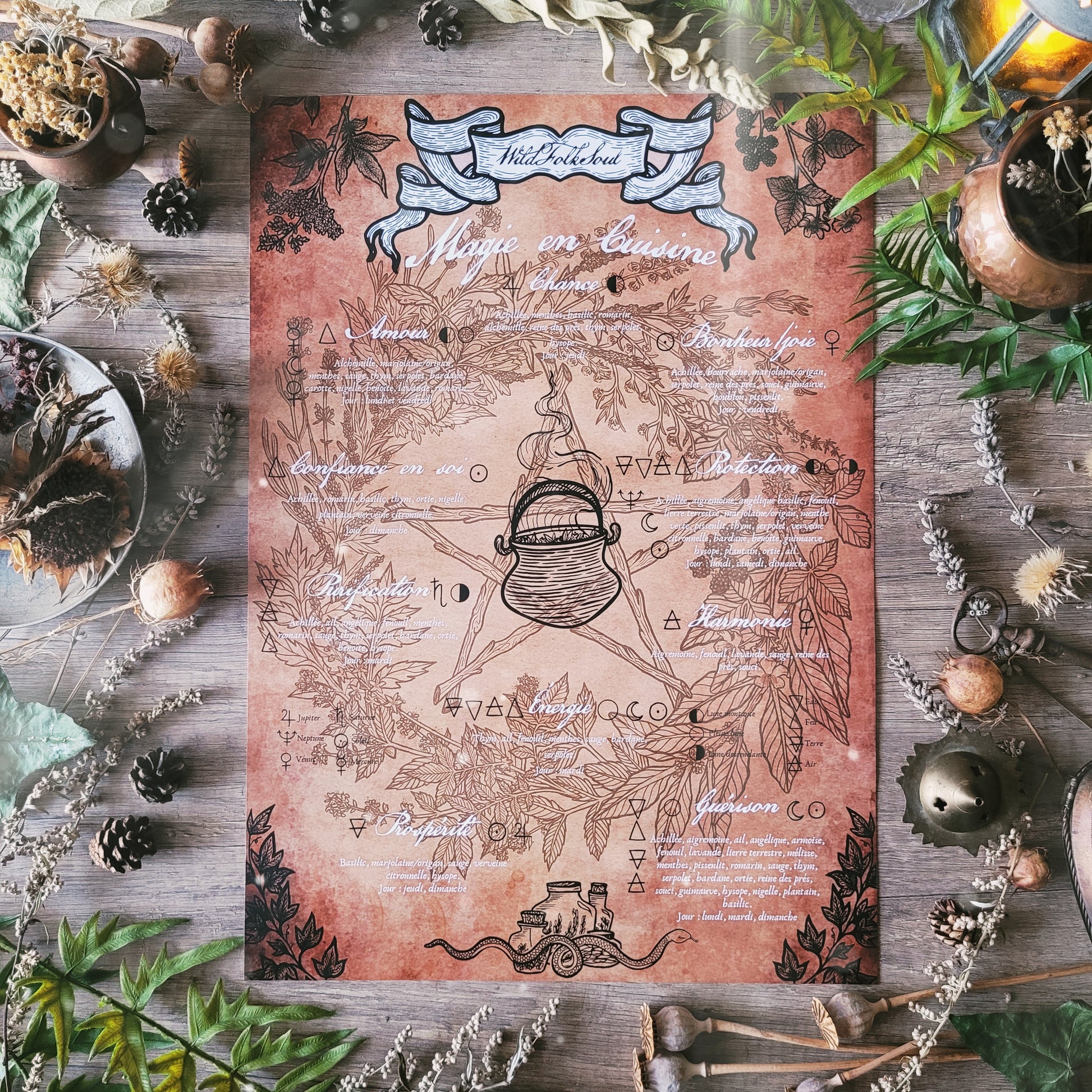 ✦ Une affiche de rappel des intentions rattachées aux plantes en cuisine magique au format A3
