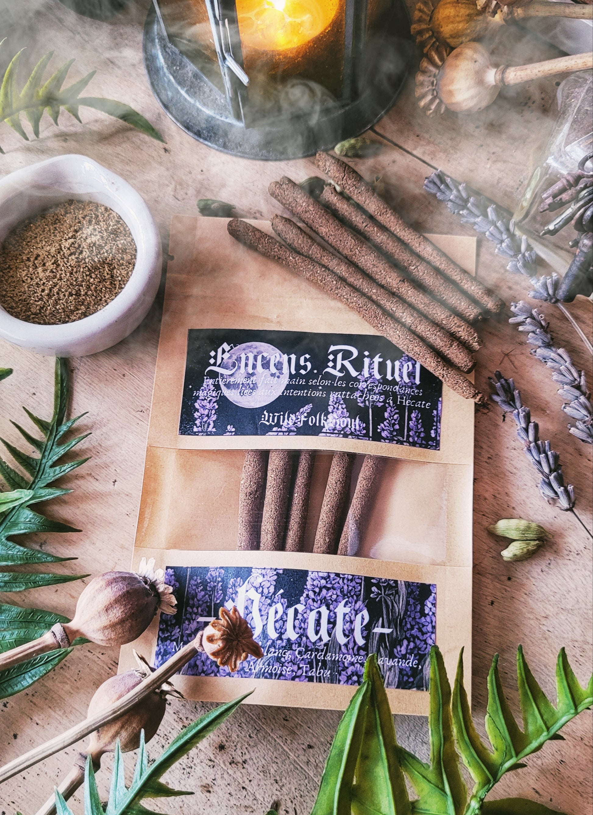 Ces encens ont été pensés et réalisés par mes soins à l’aide d’ouvrages sur les correspondances magiques liées à Hécate, et suite à de nombreux essais afin d’obtenir le meilleur résultat énergétique et olfactif.