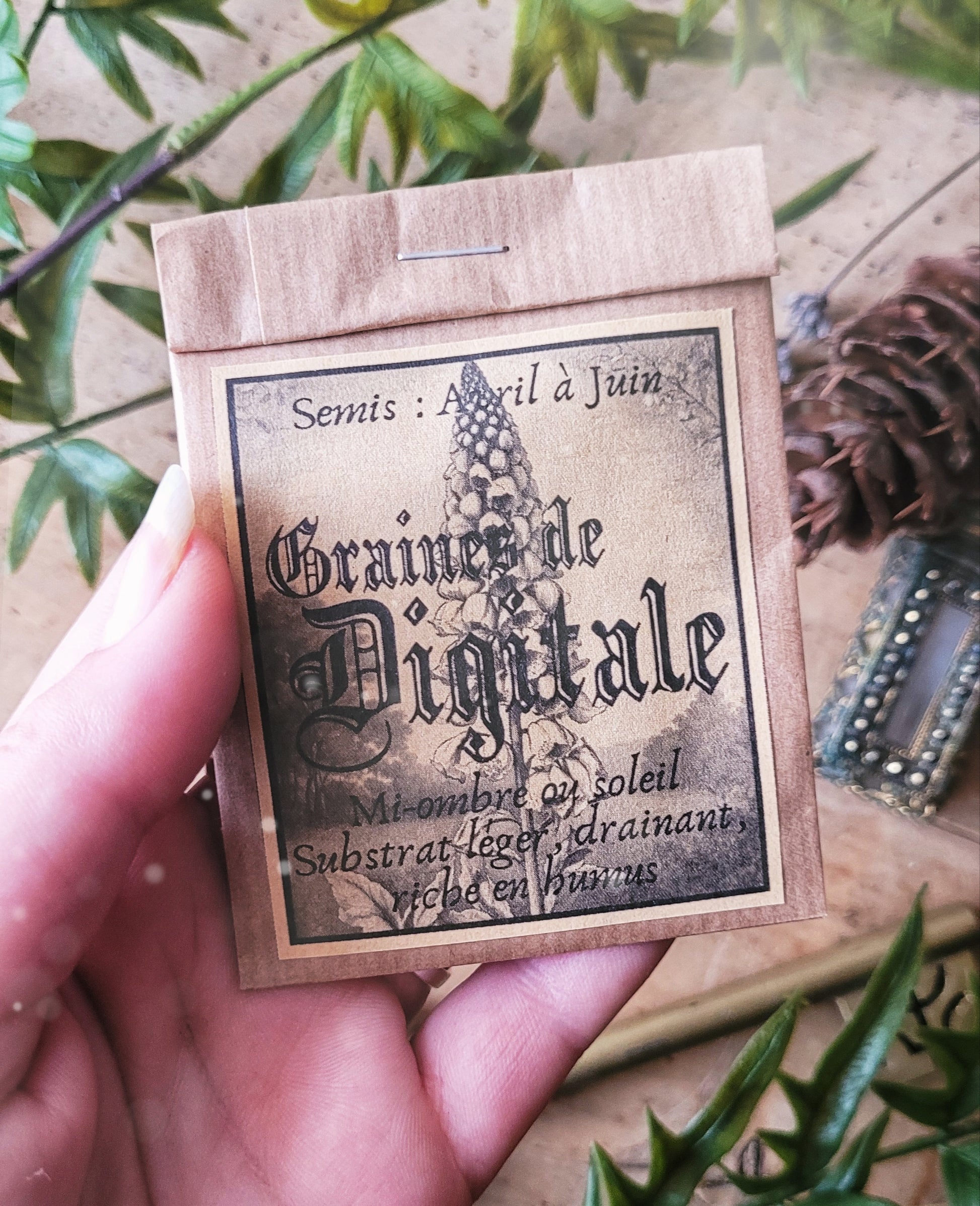 Un sachet de graines de digitale pourpre