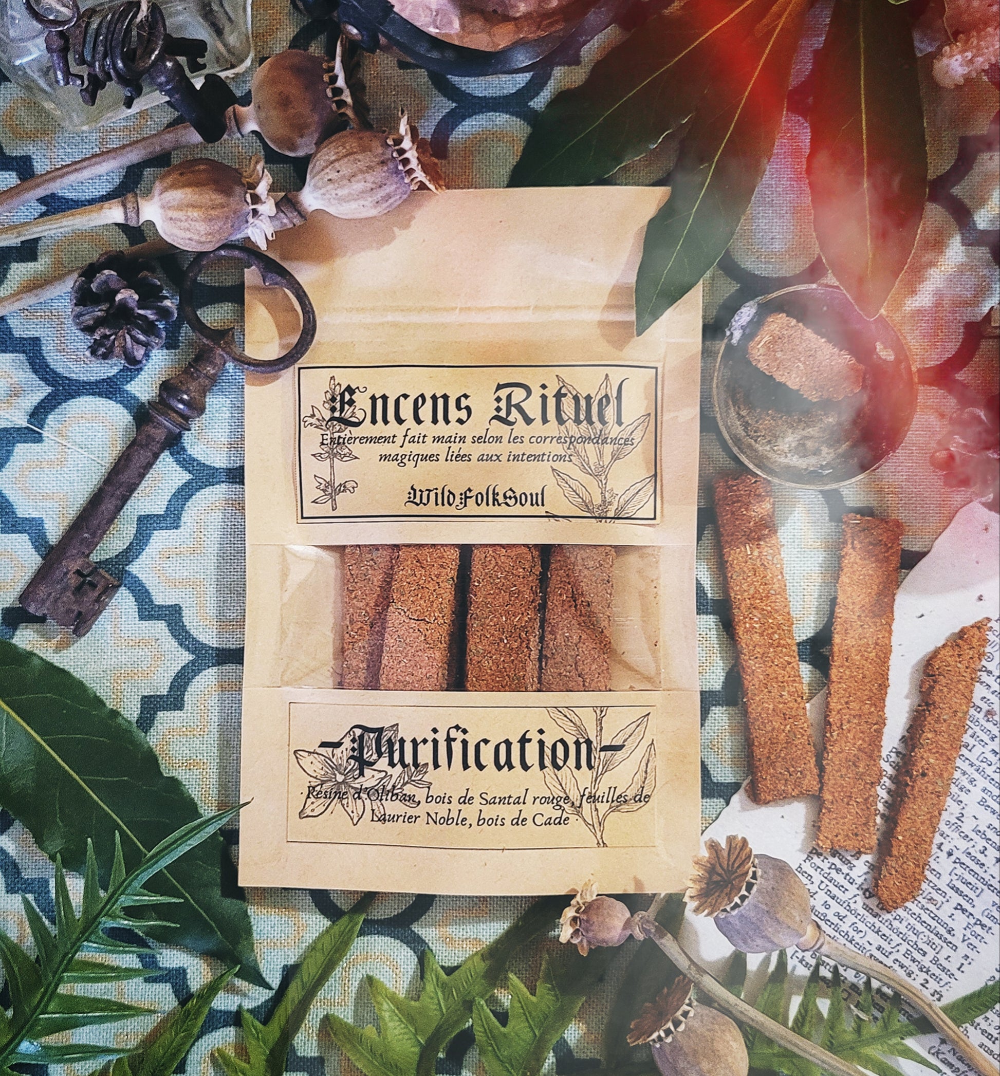 Cet encens a été pensé et réalisé par mes soins à l'aide d'ouvrages sur les correspondances magiques pour la purification, suite à de nombreux essais afin d'obtenir le meilleur résultat énergétique et olfactif.