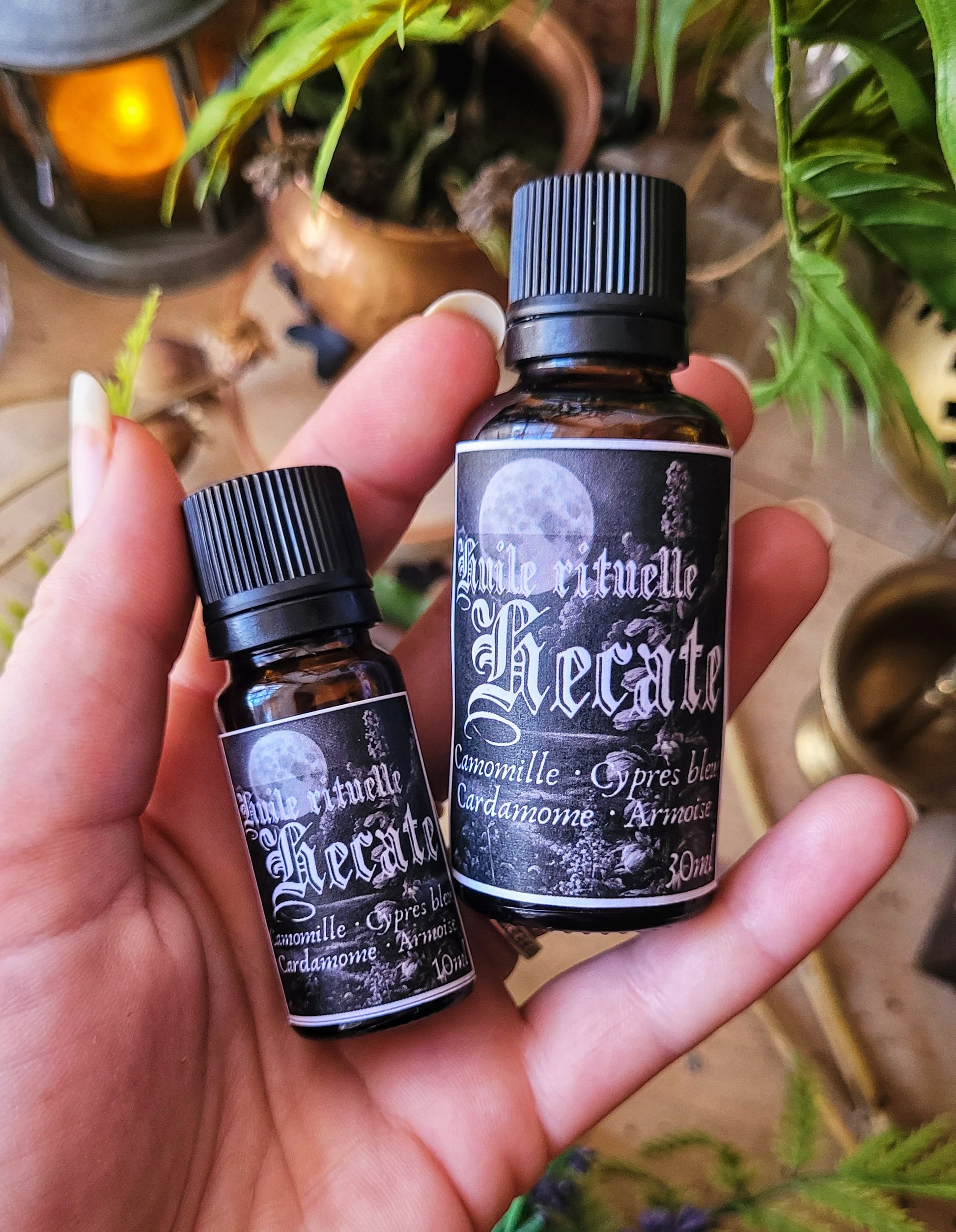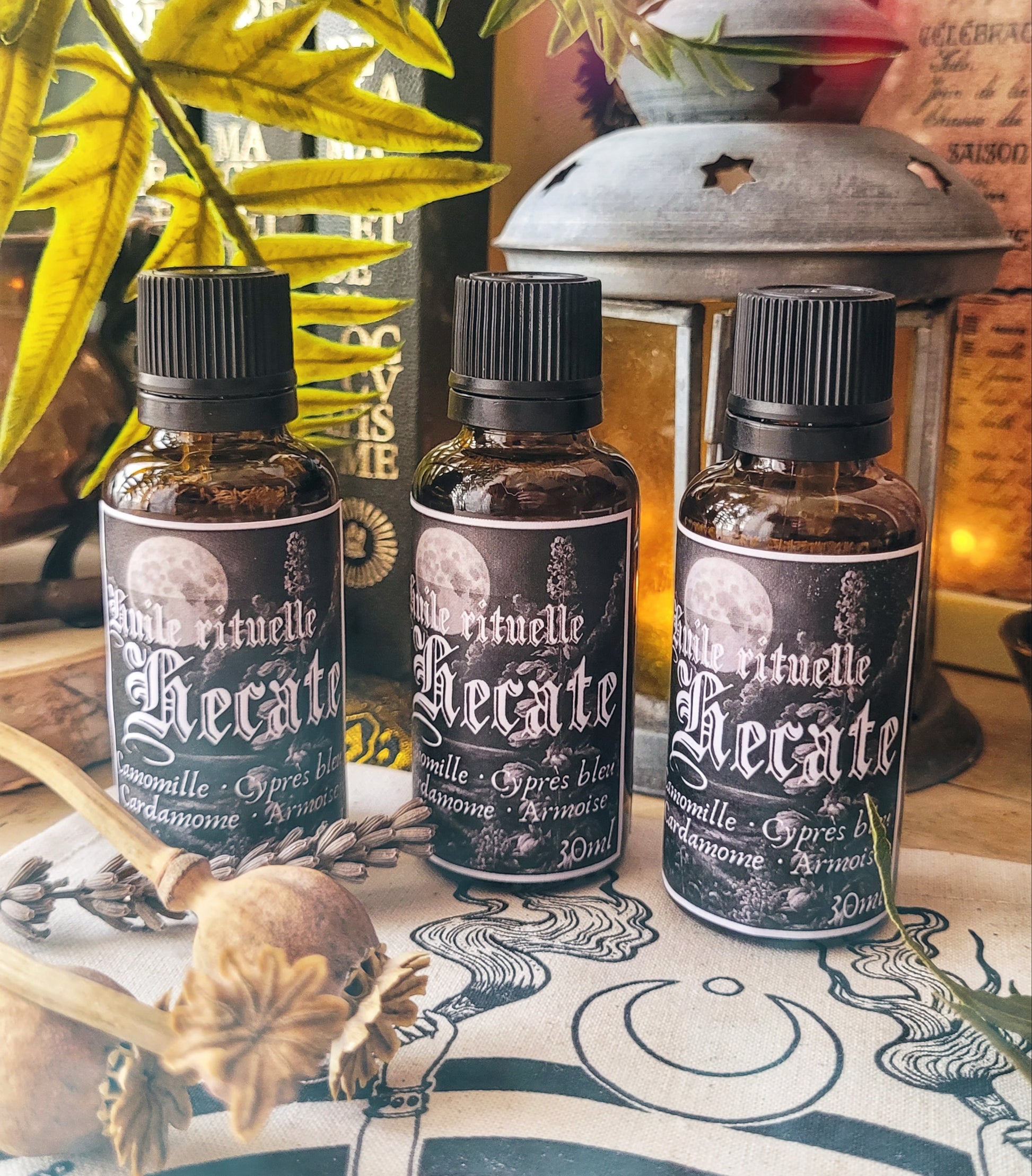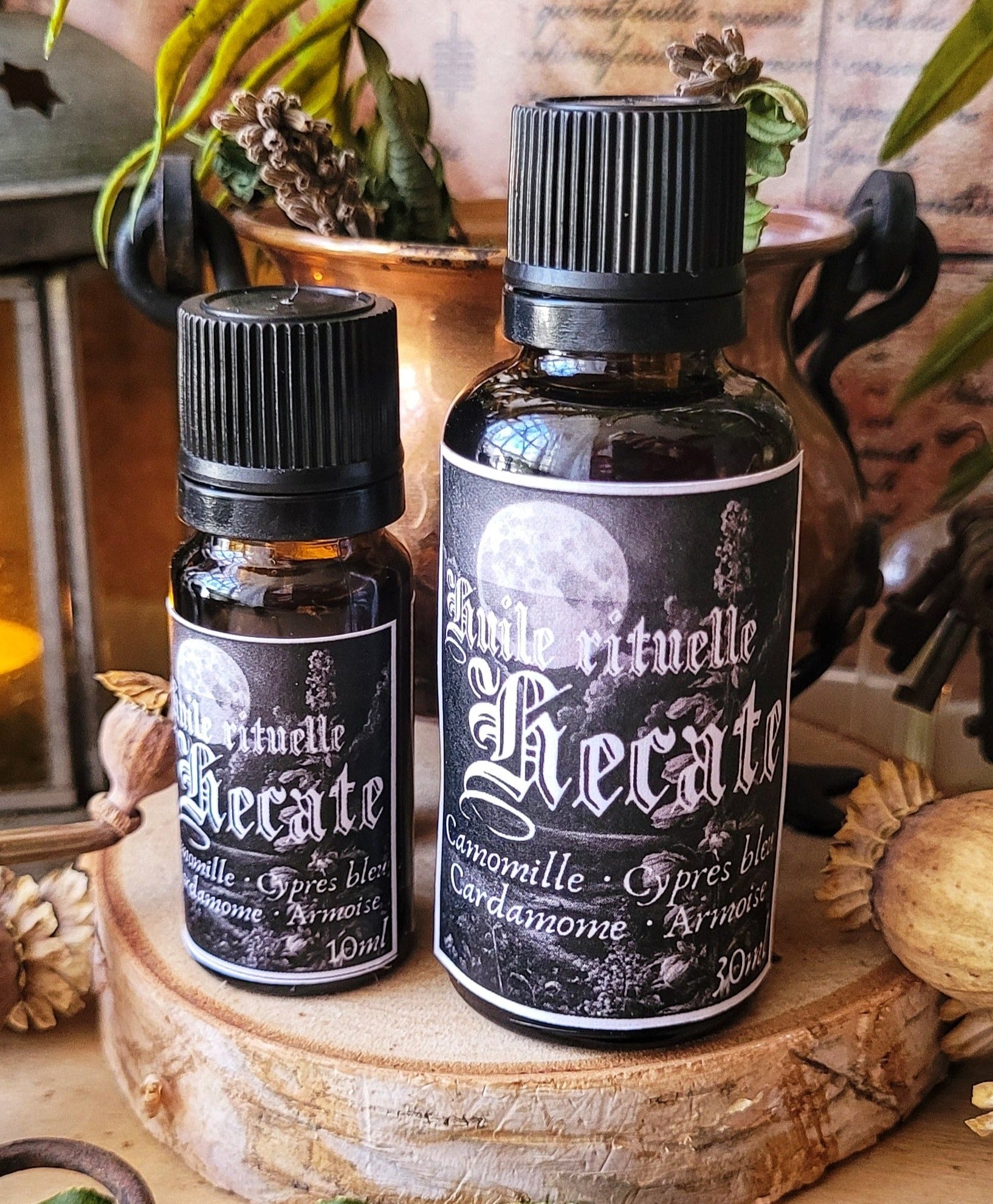 Cette huile a été pensée et réalisée grâce aux correspondances liées au culte d'Hécate pour créer une huile rituelle la plus chargée possible.
